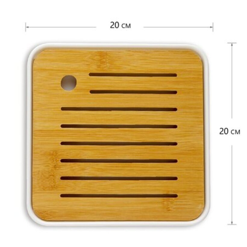 Небольшая чайная доска, состоит из пластикового поддона белого цвета и бамбуковой крышки с узкими прорезями и прорезной ручкой